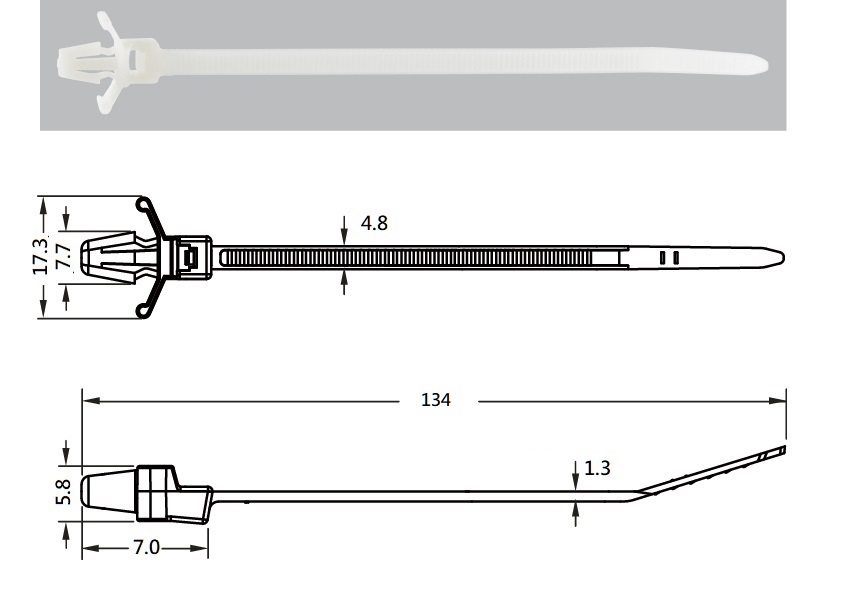 | ITEM | Hole Dimension | Board Thickness | Bundle Dia. | Tensile Strength (min.) | Packing | |